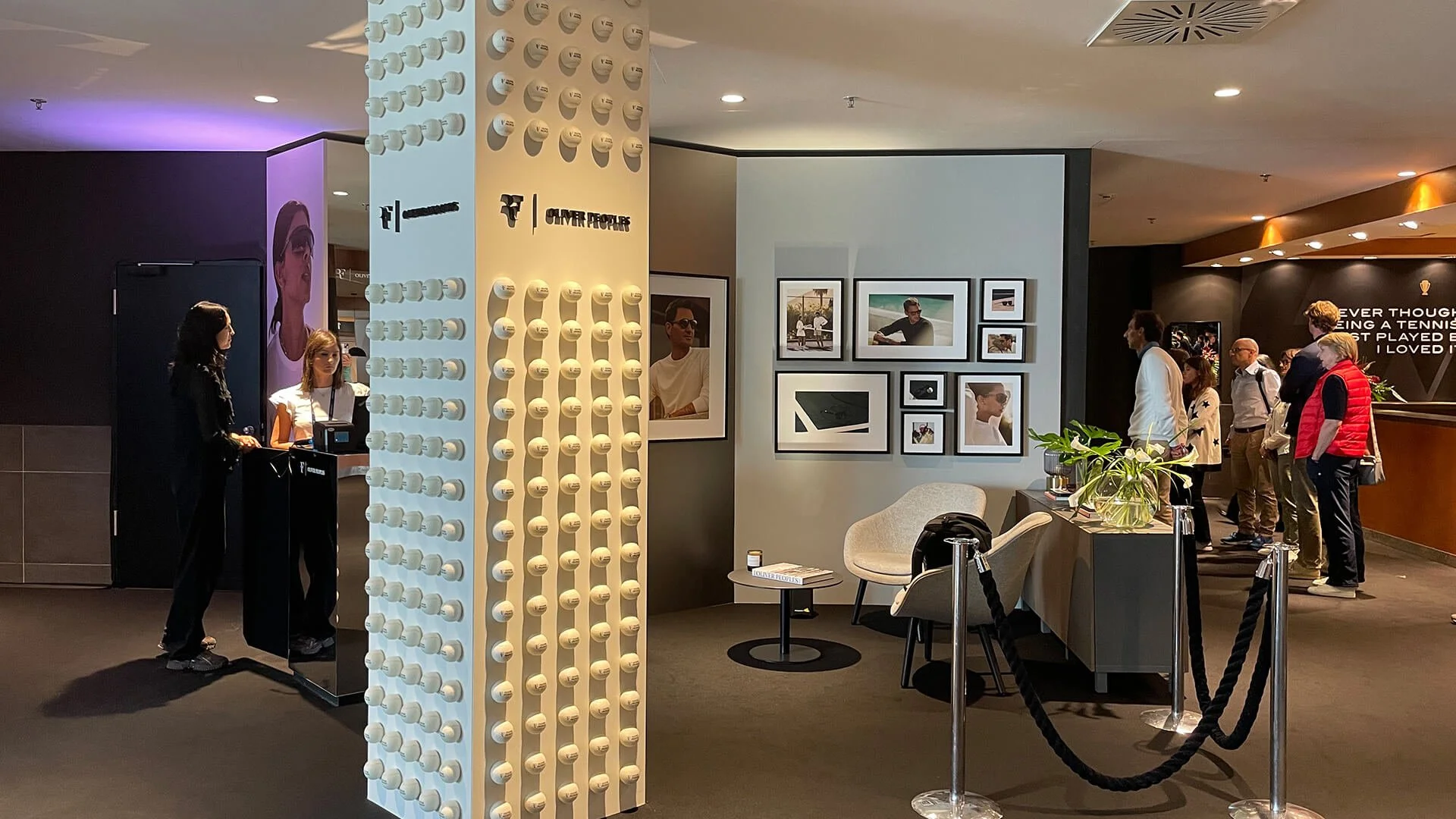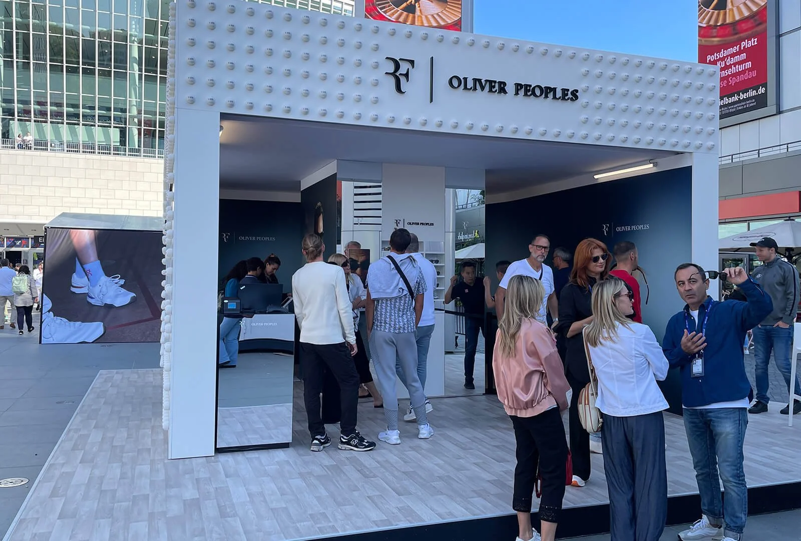 Conception, design, visualisation, implementation and install of Oliver Peoples booth and hospitality experience at the Laver Cup in Berlin in collaboration with Designwerk.